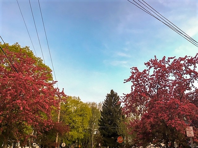 Now, crabapples line the street that intersects the street I live on, and other streets in this area. Bare now, they brighten the streets they are planted on each May.